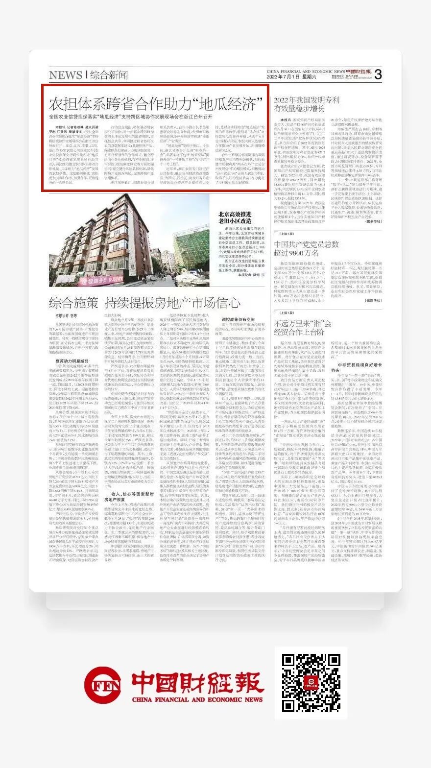 中国财经报:《农担体系跨省合作助力“地瓜经济”——全国农业信贷担保落实“地瓜经济”支持跨区域协作发展现场会在浙江台州召开》